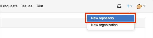 首先,在GitHub上建立一個用來體驗Pull Request的數據庫。前往https://github.com/ 登入後,點擊右上方的加號按鈕,再點擊「New repository」。